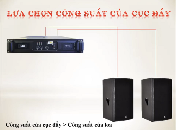 Theo nguyên tắc, cách chọn cục đẩy công suất lý tưởng sẽ lớn gấp 2 lần công suất trung bình của loa. Chẳng hạn bạn sử dụng hệ thống loa có mức công suất trung bình là 100W thì thường công suất PEAK là 400W, như vậy bạn chỉ cần chọn cục đẩy là 200W. Đây là công suất lý tưởng cho dàn âm thanh chất lượng.